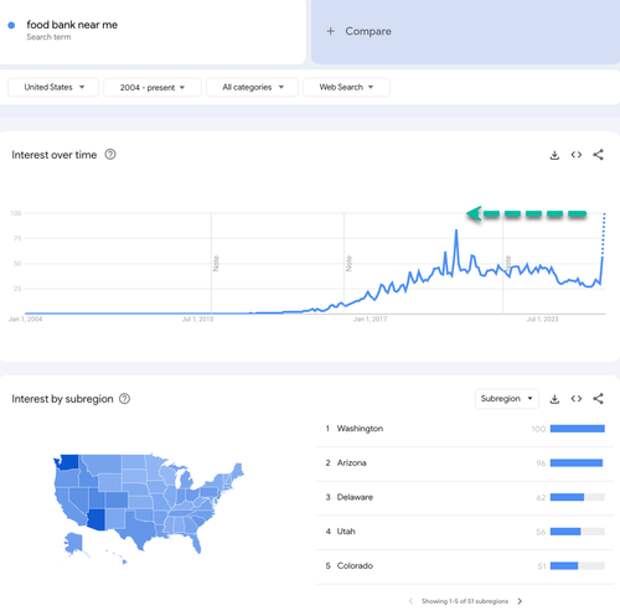 In the meantime, Google Search trends show "food bank near me" surged above Covid panic highs as those who rely heavily on the federal government to survive scramble for food.