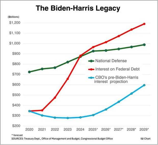 How do we know Biden and Harris are to blame? Before they took office, the Congressional Budget Office (CBO) projected net interest payments for the next decade, based on the policies that Donald Trump had in place.